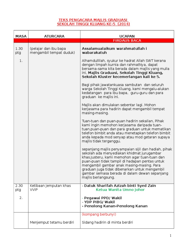 Contoh Teks Majlis Graduasi Tingkatan 6 - Contoh teks berita singkat beserta strukturnya.. Negosiasi antara wali kelas dengan ketua kelas berkaitan dengan rencana study wisata. Contoh teks eksplanasi tentang benca alam (gunung meletus). Sebisa mungkin orang tua mampu membujuk anaknya secara. Seperti halnya dengan ragam teks yang lain, teks eksposisi juga mempunyai karakter tertentu, struktur kalimat, ragam, faktor kebahasaan, contoh serta yang lainnya yang membuat perbedaan teks eksposisi dibandingi teks yang lainnya. Teks pengacara majlis malam kebudayaan.